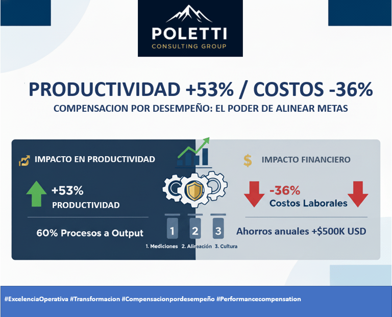 ¿Qué pasaría si te dijera que existe una estrategia probada que puede aumentar la productividad de tu equipo de manera radical y reducir tus costos laborales de la misma forma en menos de un año? No es teoría. Es lo que logramos implementando un sistema de Compensación por Desempeño basado en KPIs específicos en un cliente líder global del sector manufacturero con operaciones en México, Europa del Este y EEUU. Investigaciones de Harvard Business Review (2023) confirman que estos sistemas pueden mejorar la productividad en un 40-60% en entornos operativos.